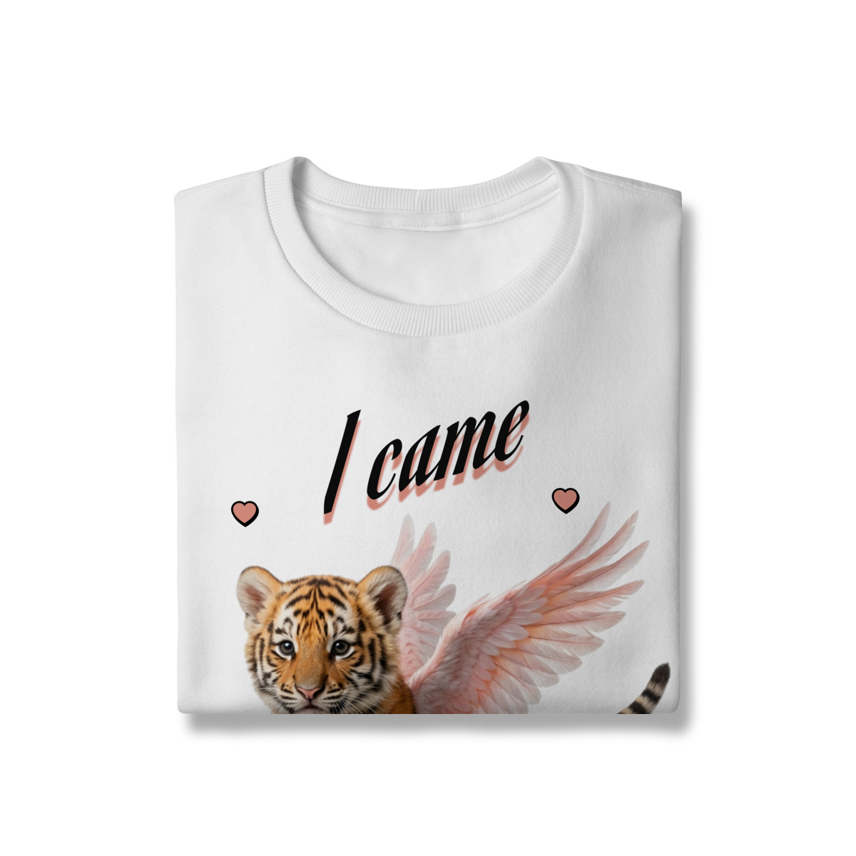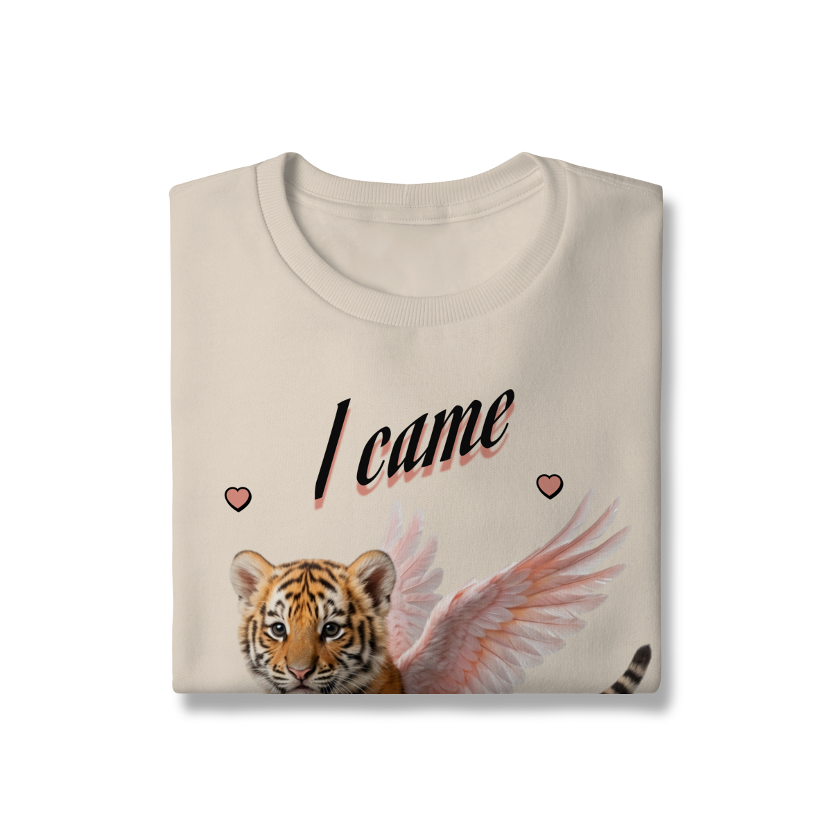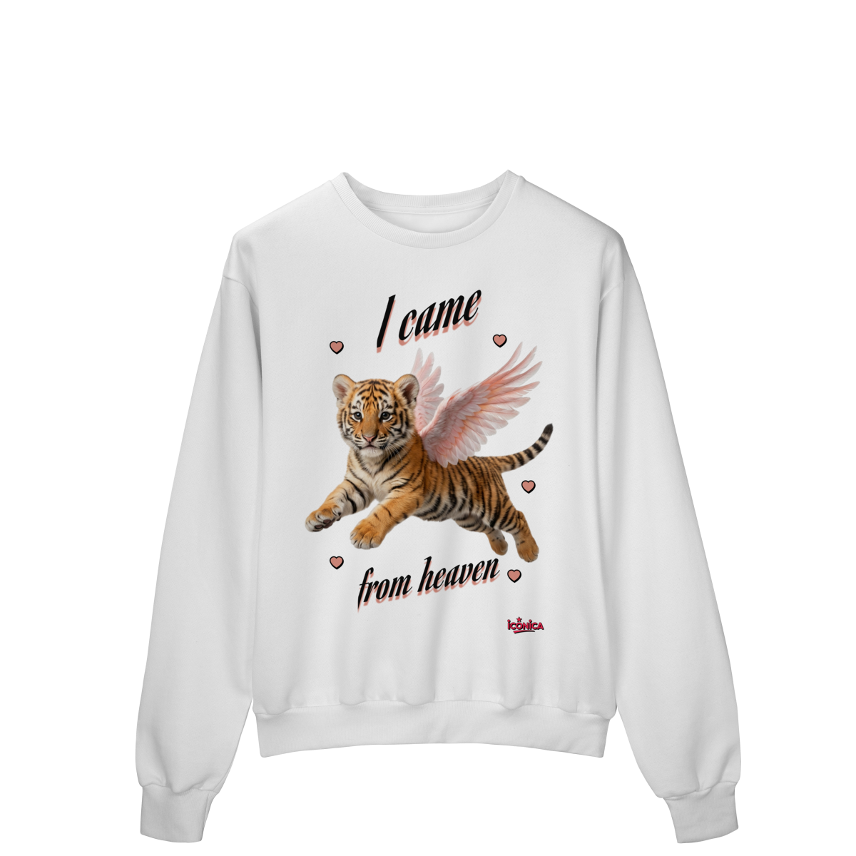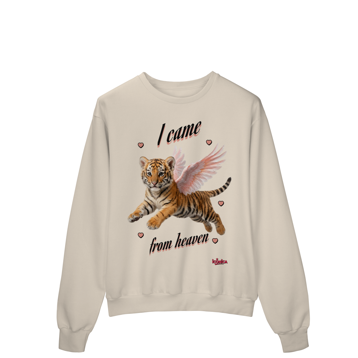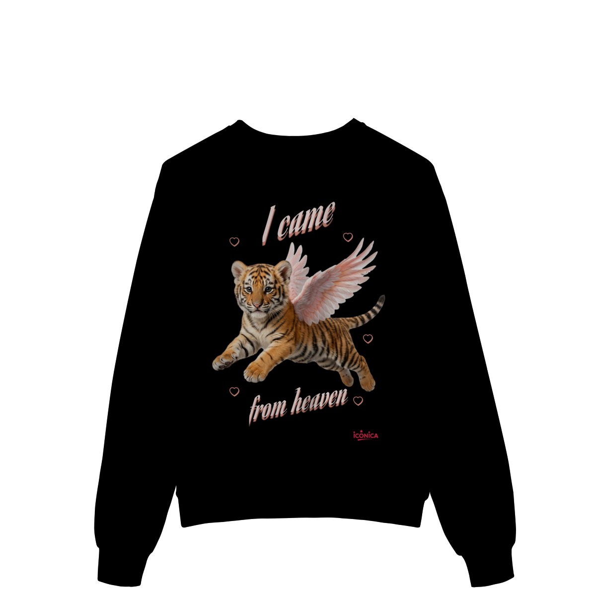 Moletom com modelagem confortável e estilo moderno, trazendo uma estampa delicada de um filhote de tigre com asas e a frase “I came from heaven”. Uma peça única, que mistura atitude e suavidade, perfeita para looks casuais e cheios de personalidade.